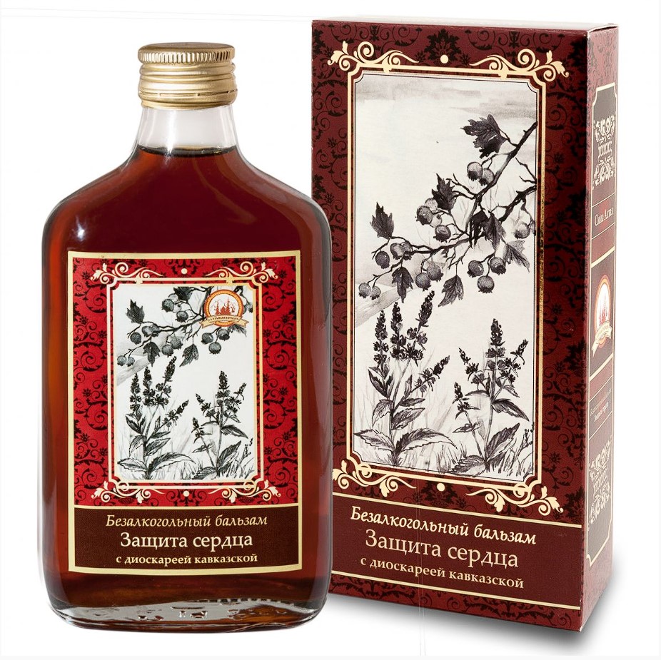 \nВ состав бальзама входит диоскорея кавказская, которая обладает сосудорасширяющим действием, снижает кровяное давление, улучшает функцию сердца, снижает приступы стенокардии, улучшает коронарный кровоток (в сердце), замедляет пульс (снимает тахикардию), то есть диоскорея кавказская показана при учащённом сердцебиении.