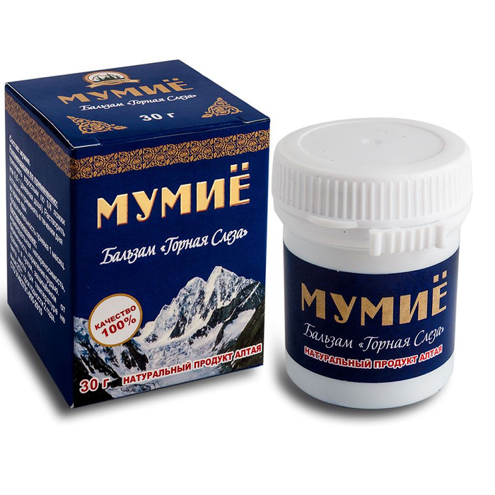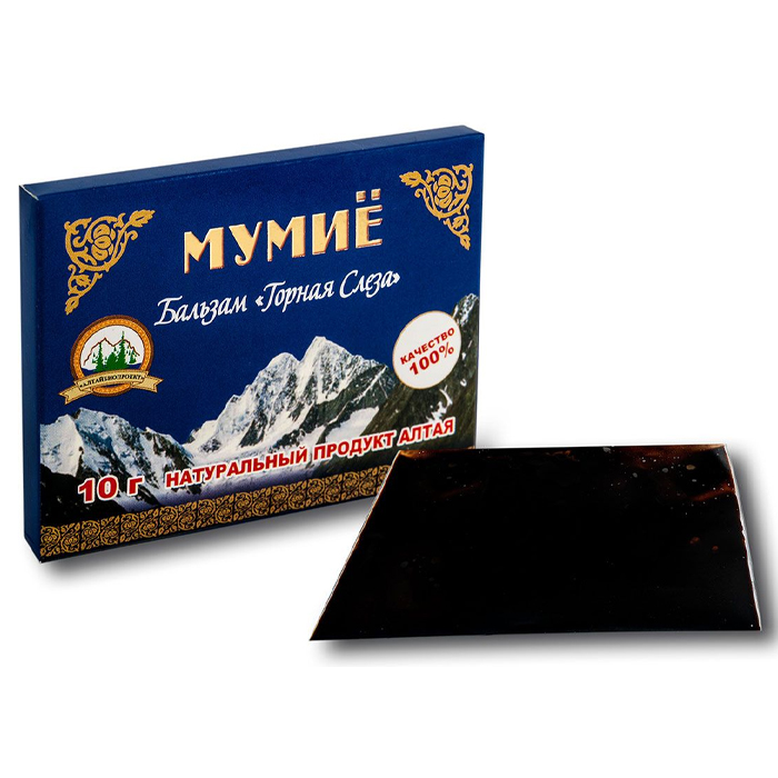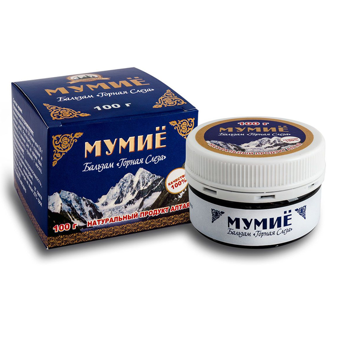МУМИЕ - это древний чудотворный бальзам. Это сок скал, который с незапамятных времен применяется для лечения различных недугов. \nМумие "Горная слеза" - сильный биостимулятор с широким диапазоном действия. \nМумие "Горная слеза" повышает физиологическую активность как отдельных клеток, так и целых систем организма. \nБальзам Мумие "Горная слеза" проявляет свойства в 8 раз сильнее, чем любые антибиотики. Мумие активизирует обмен веществ и повышает содержание эритроцитов и гемоглобина в крови. \nМумие стимулирует выведение вредных веществ из организма. Мумие собрано и произведено в Горном Алтае. \n \nКупить мумие "Горная слеза" бальзам вы можете у нас! Оптом и в розницу! Для заказа положите товар в корзину!