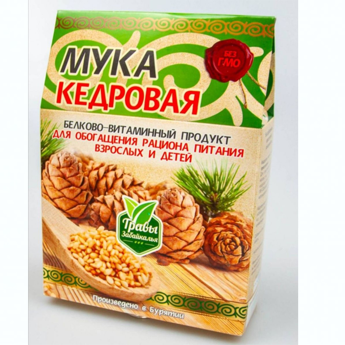 Кедровая мука делается из перемолотого жмыха очищенных кедровых орехов. По сравнению с другими видами муки в кедровой почти в 2 раза меньше калорий, чем в цельнозерновой пшеничной муке, 20% белка, и 15 разных минералов, 6 витаминов группы B и витамин E. \n \nКедровая мука незаменима в питании беременных и кормящих матерей, вегетарианцев и спортсменов как источник белка. \n \nКупить Кедровую муку вы можете у нас! Оптом и в розницу! Для заказа положите товар в корзину!