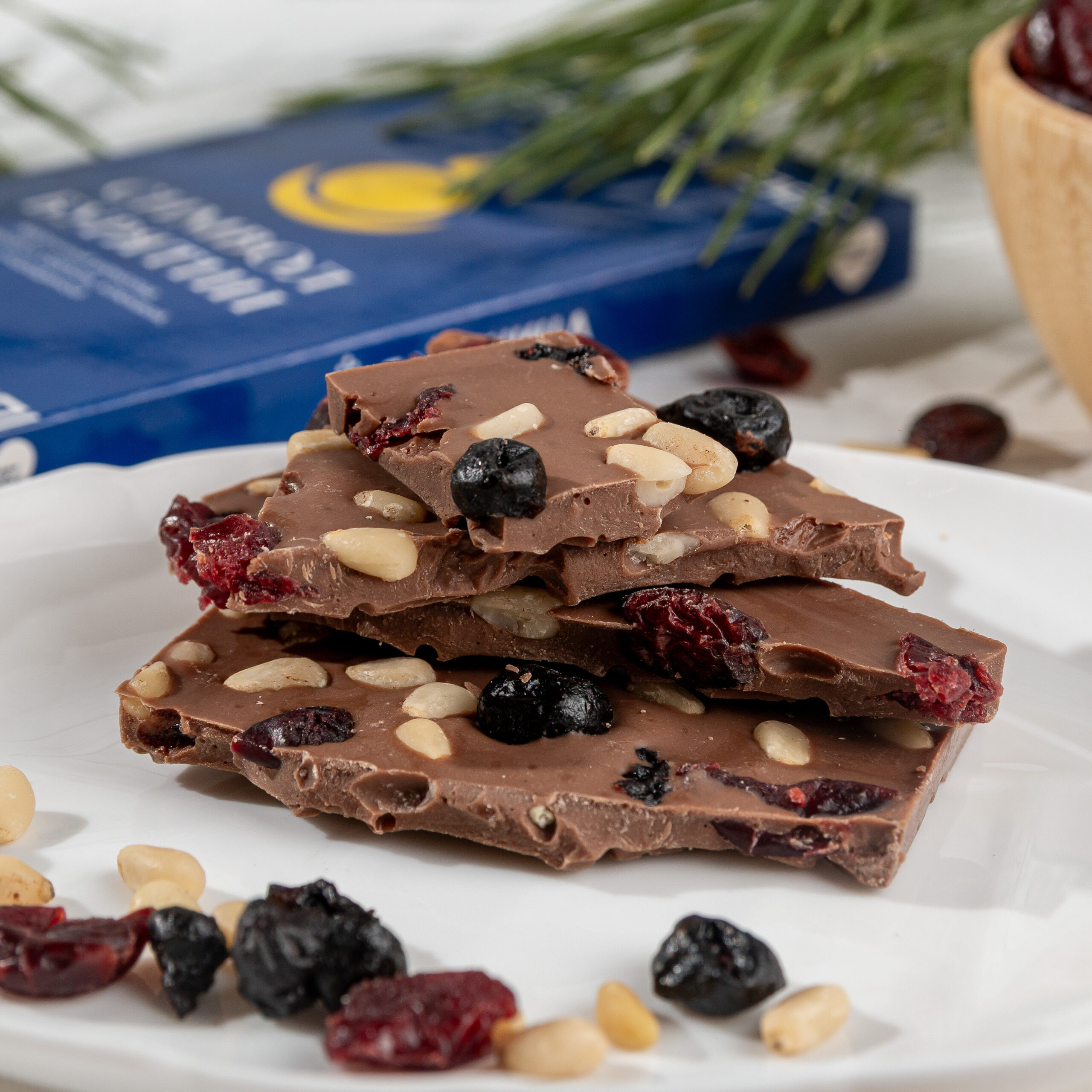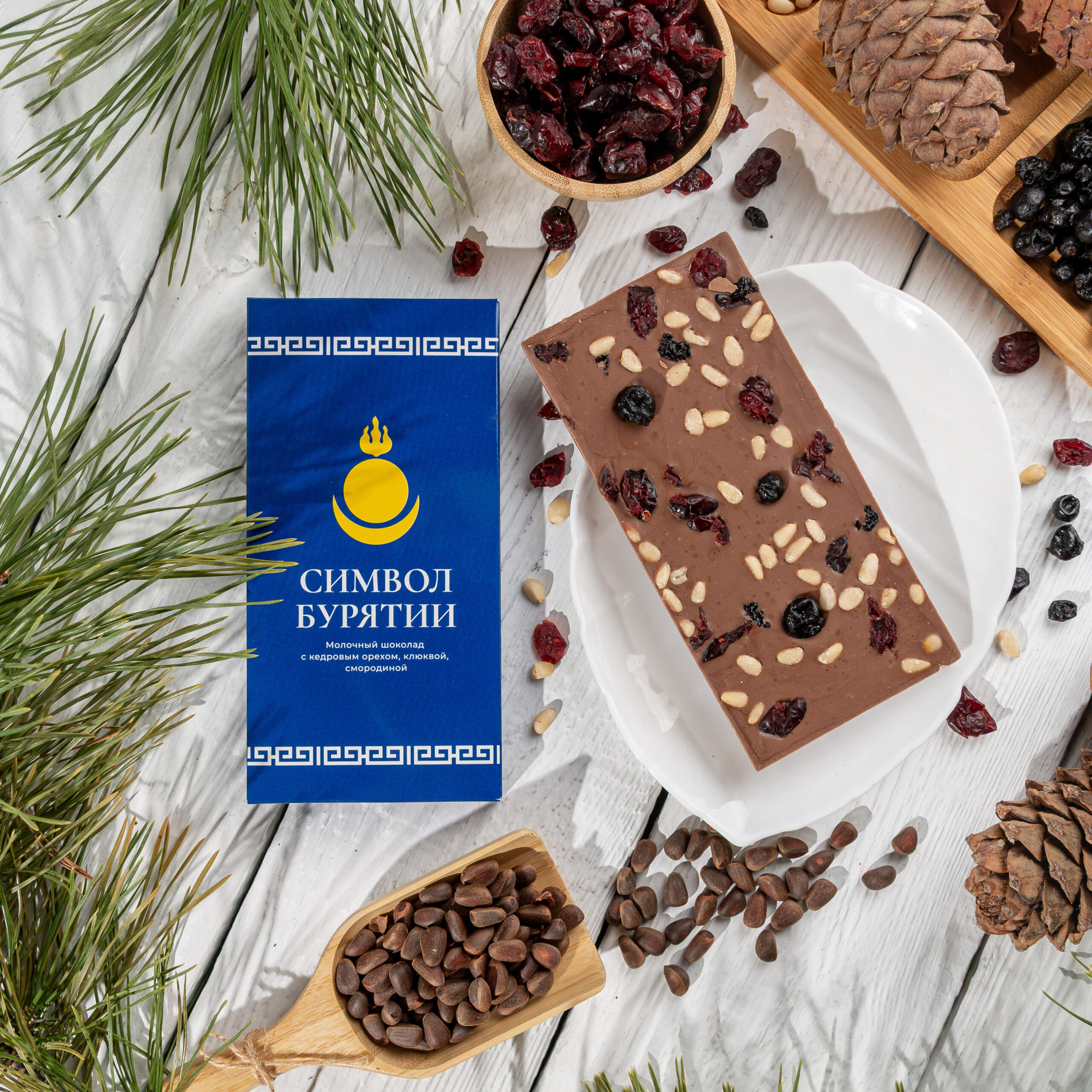 Шоколад молочный с кедровым орехом, клюквой, смородиной "Символ Бурятии" 80 гр