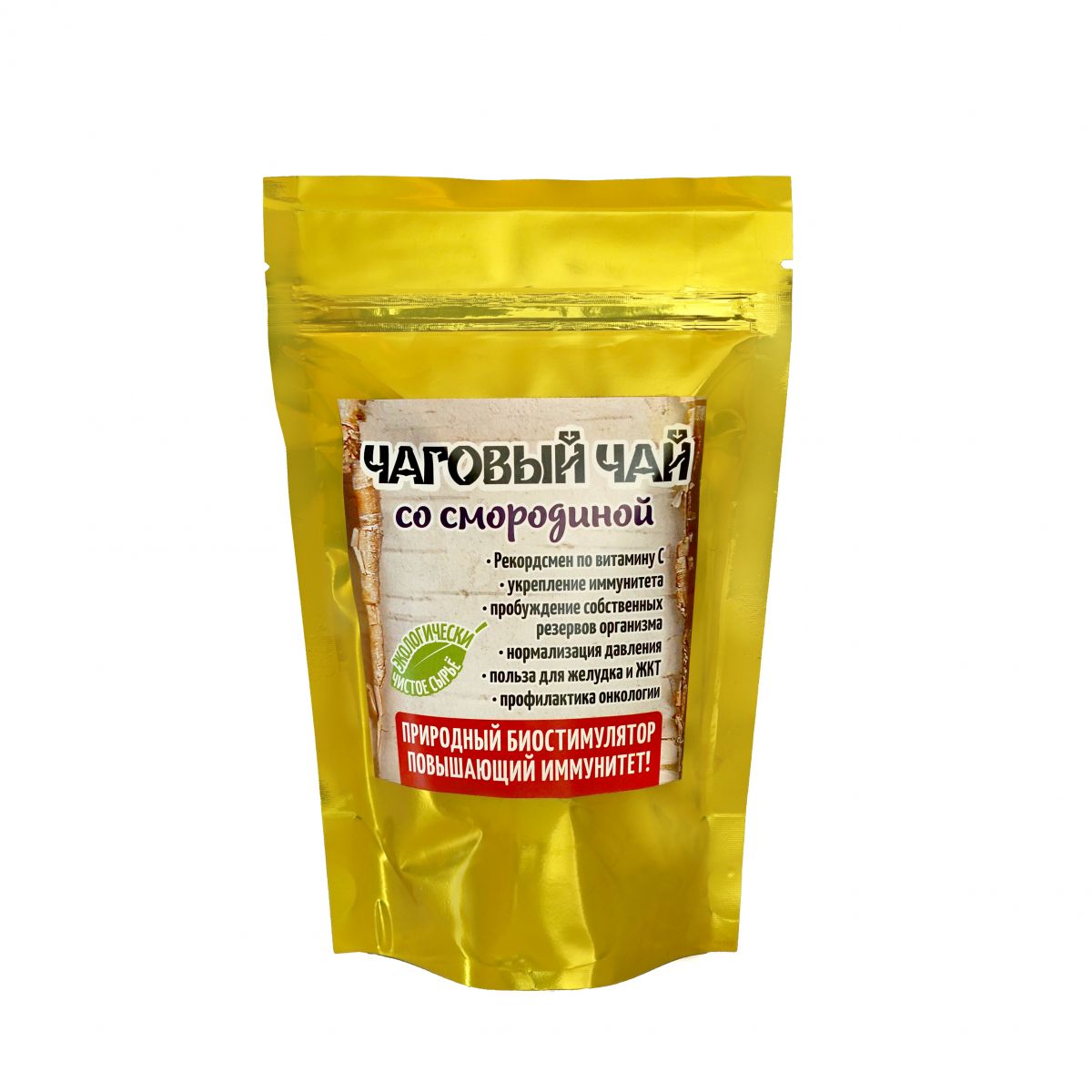 Чага - это гриб, благотворно влияющий на пищеварительную систему. \n \nБерезовый гриб ЧАГА обладает общеукрепляющим, спазмолитическим, мочегонным, болеутоляющим, противомикробным, репаративным, общетонизирующим действием. \n \nЧаговый чай со смородиной обладает мочегонным эффектом, рекомендуются при авитаминозе и сниженном иммунитете. \nЧаговый чай со смородиной заваривается как лечебный чай при простудах и болях в суставах. \nКупить Чаговый чай со смородиной вы можете у нас! Оптом и в розницу! Для заказа